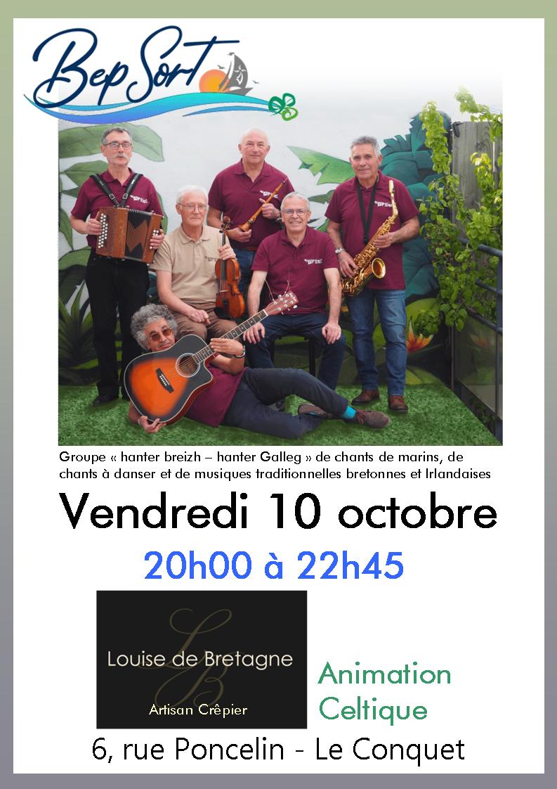 Ven 10 oct. Animation Celtique chez "Louise de Bretagne" Artisan Crêpier au Conquet 19h30