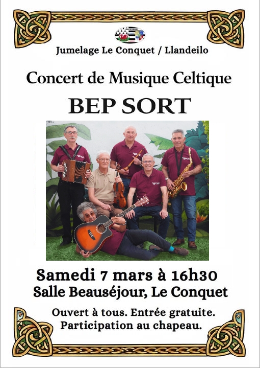 Sam 7 mars Animation musicale sur stage de crêpiers, pour l'Asso. Jumelage du Conquet (Beauséjour)